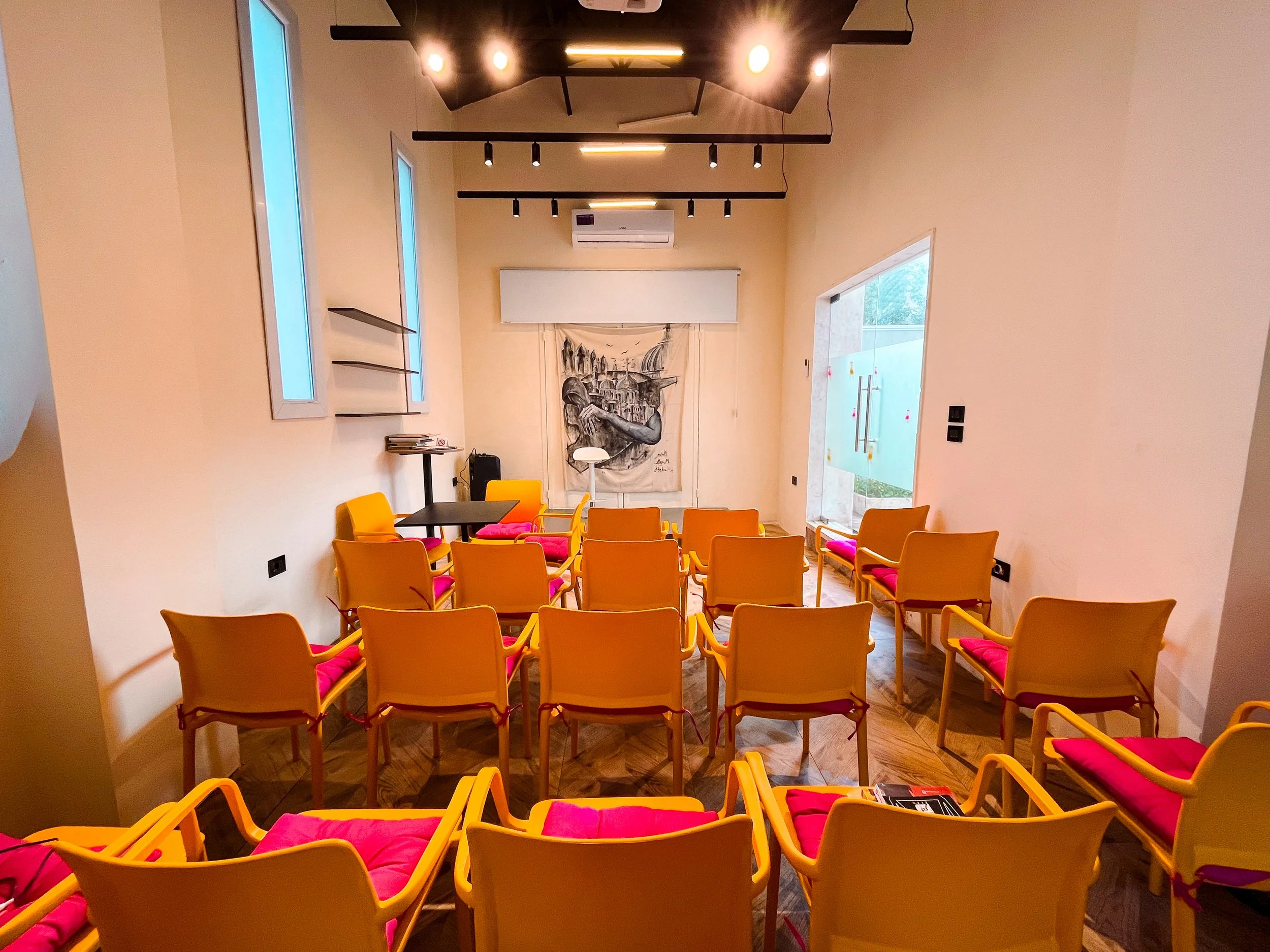 A spacious, flexible event area that can accommodate up to 30 people. Ideal for workshops, film screenings, start-up launch, with multiple setup options to suit your needs.